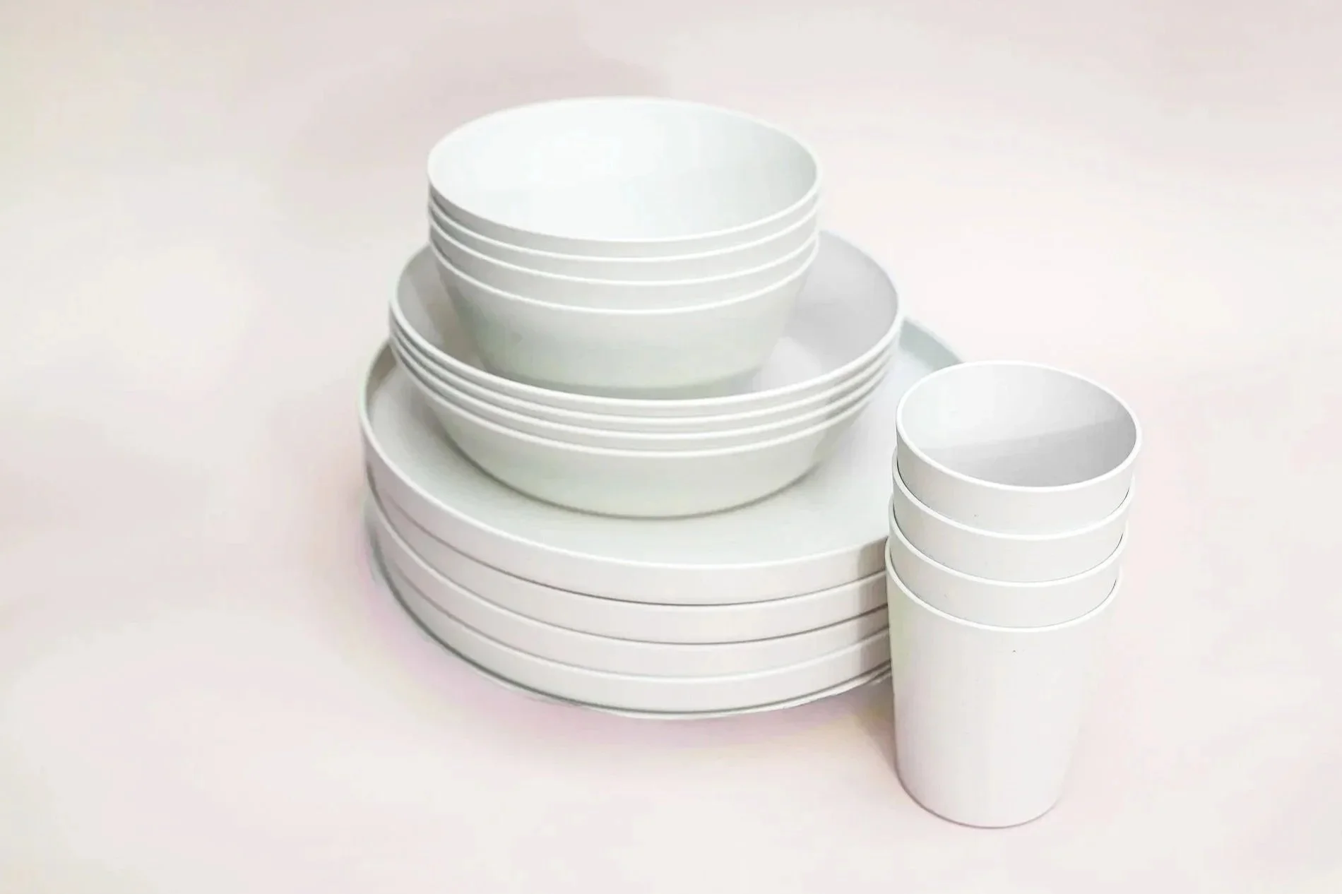 No — our dinnerware is 100% plastic-free and made from renewable plant-based materials rather than petroleum. It’s designed as a lower-impact alternative to traditional plastic products.